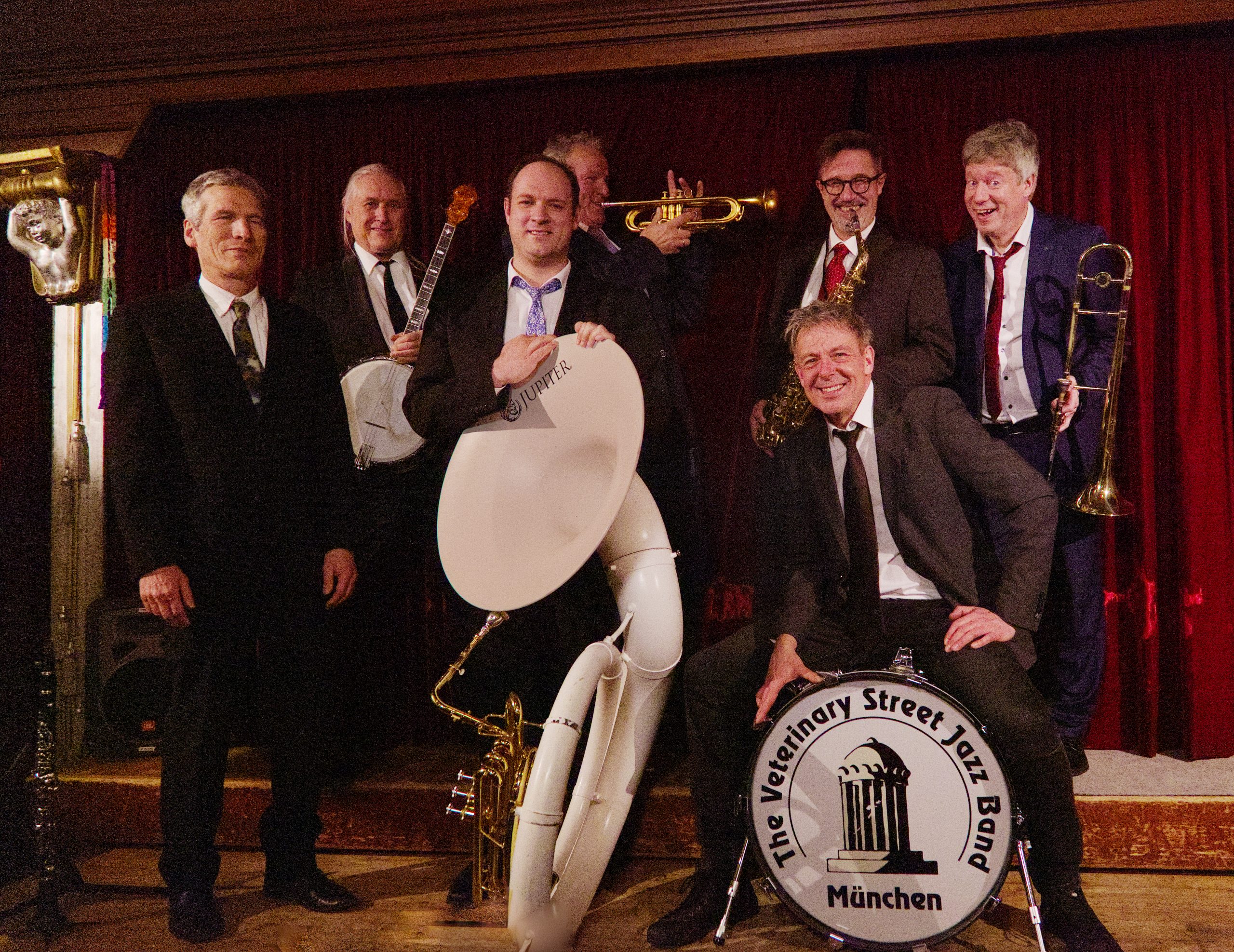 Die Wiege der Veterinary Street Jazz Band steht in München: 1978 formierte sich im traditionellen „Jazz-Stadt-Teil“ Schwabing eine nur scheinbar harmlose Studentenband. Seinen Namen leiht sich das Orchester in klassischer New-Orleans-Manier vom Gründungs-Ort: der Veterinärstraße. Tierarzt ist – entgegen weit verbreiteter Ansicht – keiner der Musiker und wird auch keiner mehr werden…